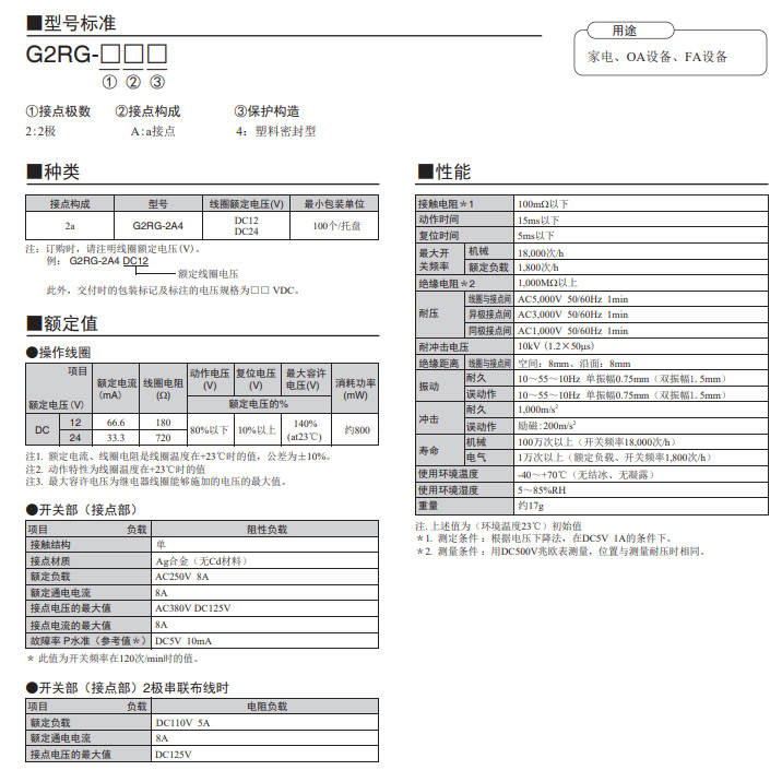 線圈接點(diǎn)間的絕緣距離8mm以上、耐沖擊電壓10kV的高絕緣